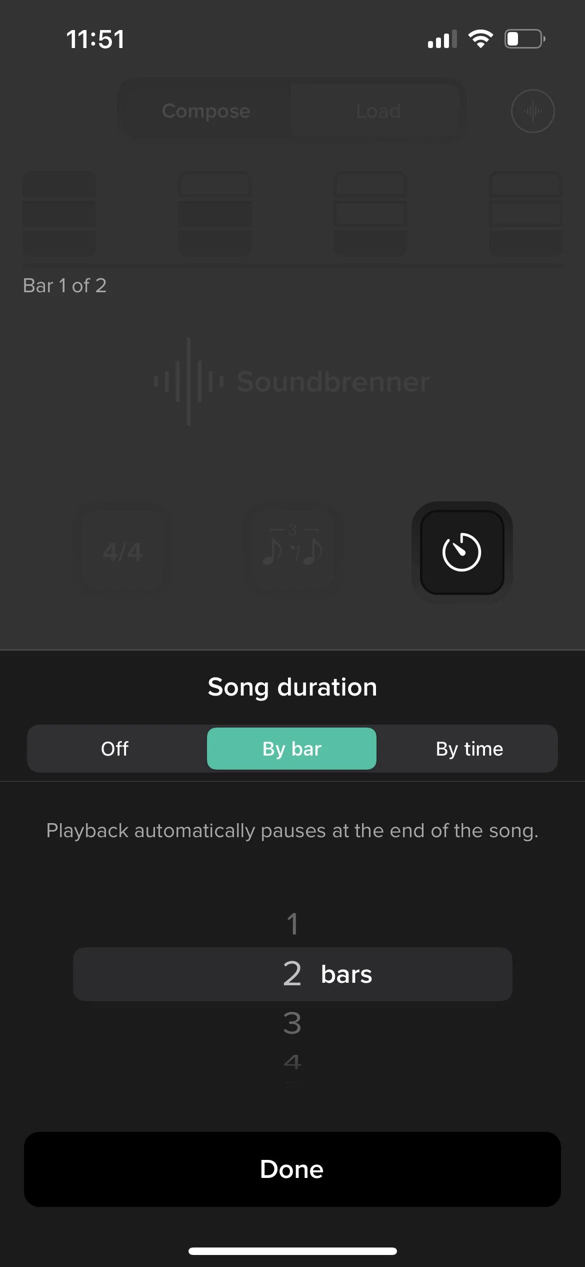 Often, on gigs, I need to reference a tempo to start the song. Since I'm not paying to click for the whole song, I want to avoid hearing, seeing, or feeling it after a bar or two. With the Pulse and Soundbrenner app combo, I can set the song duration for each saved song to 2 bars, after which the metronome will stop pulsating.