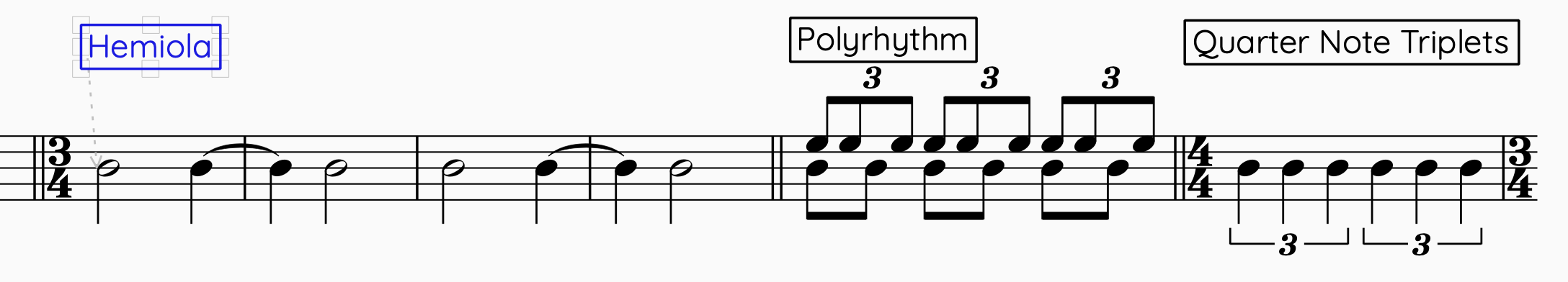 The same can be said for hemiola, polyrhythms, and quarter note triplets.