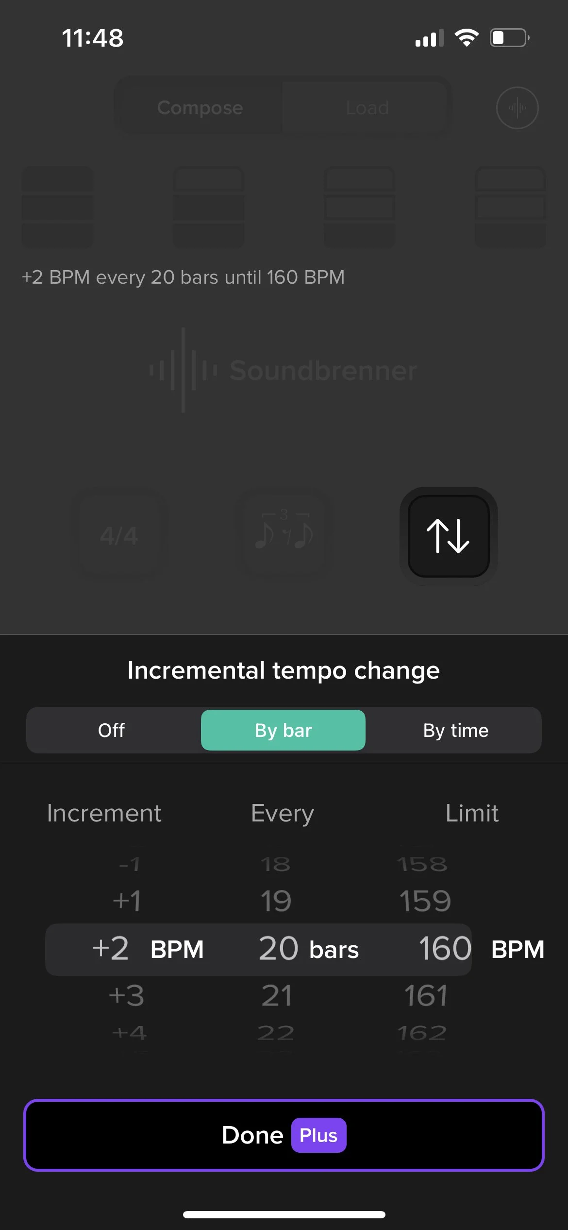 We also have the option on the app to gradually speed up the tempo, which is great for when you're working on something challenging and need to start slow but keep pushing the tempo.